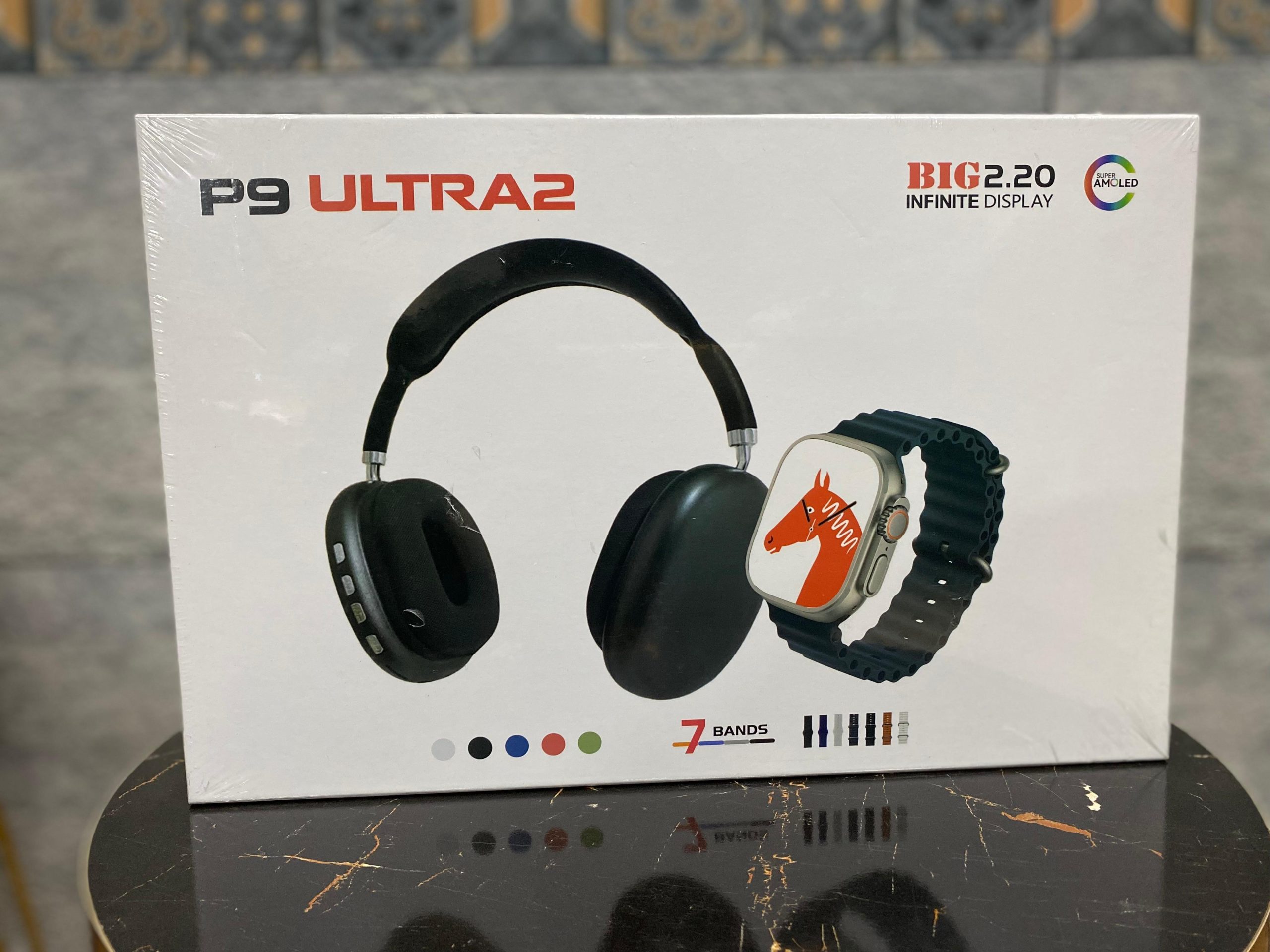 The P9 Ultra 2 is a smartwatch and headphone combo with a 2-inch touch display, health tracking, sports modes, and IP67 water resistance. The headphones provide great sound with noise cancellation.